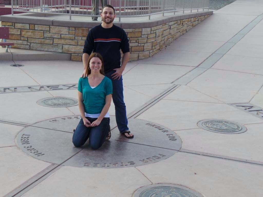 Interesting enough, a fact finding father told us that the monument outlining the boundaries of the states is incorrect according to modern GPS, so I insisted on taking a picture with the right coordinates (according to this guy’s phone in the middle of zero township.)